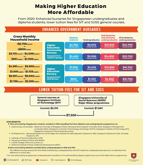 Prime Minister Lee Hsien Loong had announced during this year's National Day Rally that lower-income undergraduates and polytechnic students will pay reduced school fees with enhanced bursaries.